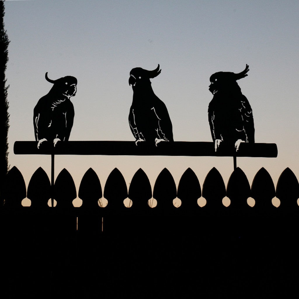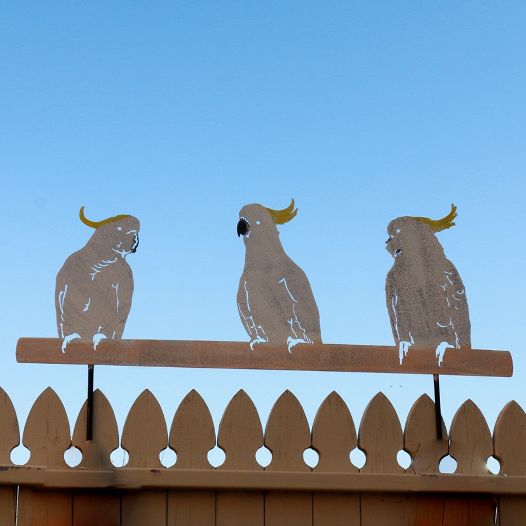 COCKATOOS ON FENCE STAKE