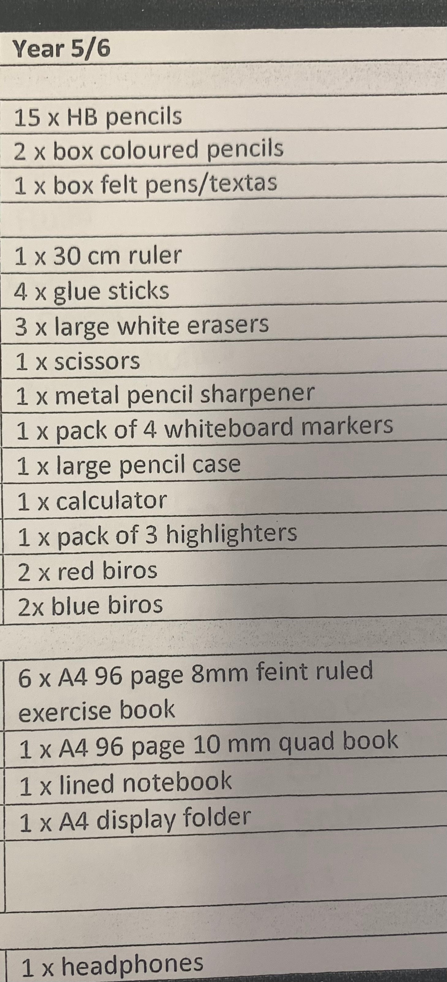 Tara year 5/6 back to school everything included on the back to school list for stationary